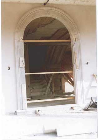 Portale con architrave a tutto sesto in fase di montaggio |
